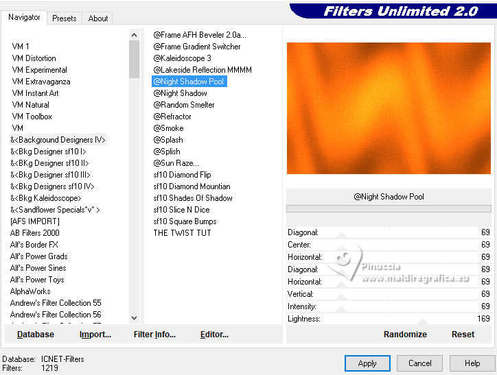 3. Effects>Plugins>Filters Unlimited 2.0 - &<Background Designers IV> - @Night Shadow Pool