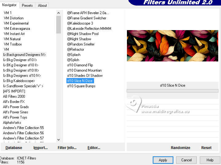 5. Effects>Plugins>&<Background Designers IV< - sf10 Slice N Dice.
