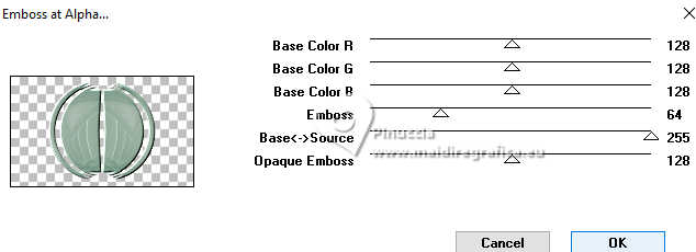 21. Effets>Modules Externes>Mura's Seamless - Emboss at Alpha, par défaut.