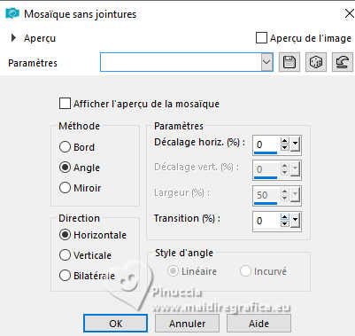 3. Effets>Effets d'image>Mosaïque sans jointures, par défaut.