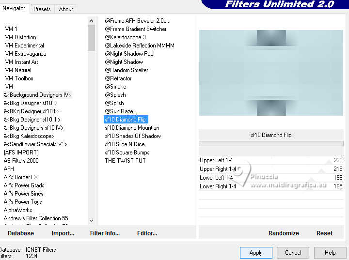 Effets>Modules Externes>Filters Unlimited 2.0 - &<Background Designers IV> - sf10 Diamond Flip, par défaut.