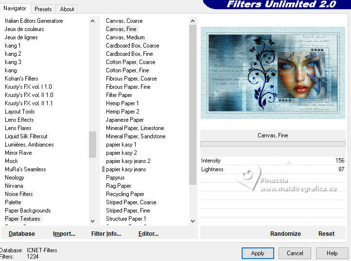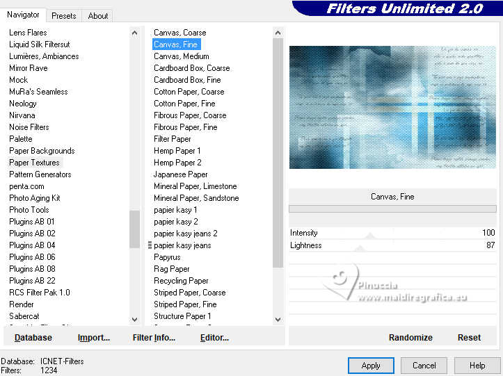 22. Effets>Modules Externes>Filters Unlimited 2.0 - Paper Texture - Canvas Fine.