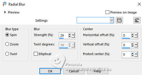 4.Repeat Adjust>Blur>Radial Blur, same settings.