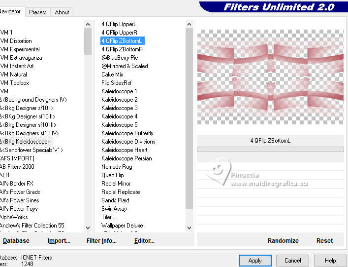 8. Effects>Plugins>Filters Unlimited 2.0 - &<Bkg Kaleidoscope/gt; - 4QFlipZBottomL