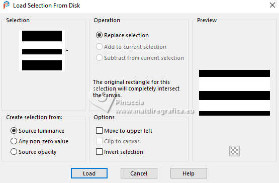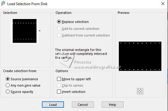 27. Selections>Load/Save Selection>Load Selection from Disk.