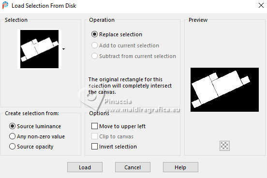 13. Selections>Load/Save Selection>Load Selection from Disk.