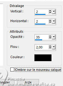 22. Effets>Effets 3D>Ombre portée, couleur noire #000000.