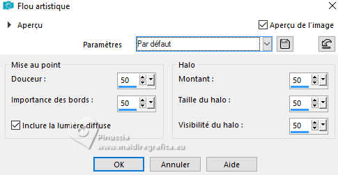 5. Réglage>Douceur>Flou artistiques, par défaut.