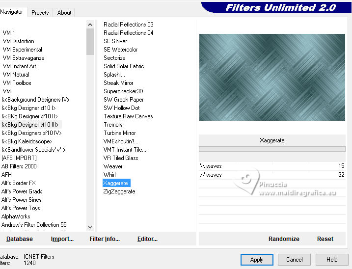 Effets>Modules Externes>Filters Unlimited 2.0 - &<Bkg Designer sf10III> - Xaggerate.