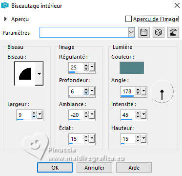 16. Effets>Effets 3D>Biseautage intérieur - couleur à choix, pour moi couleur 4 #518389.