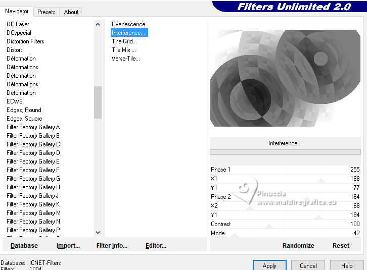 Effets>Modules Externes>Filters Unlimited 2.0 - Filter Factory Gallery C - Interference.