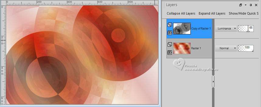 Change the Blend Mode to Luminance and reduce the opacity to 65%.