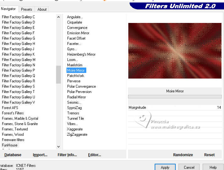 Effects>Plugins>Filters Unlimited 2.0 - Funhouse - Moire Mirror, default settings.
