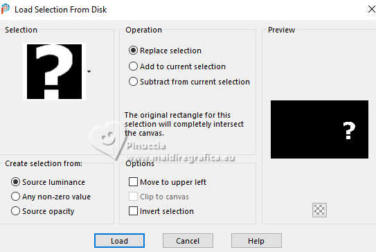 19. Selections>Load/Save Selection>Load Selection from Disk.