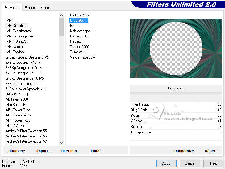 Effets>Modules Externes>Filters Unlimited 2.0 - VM Distortion - Circulator