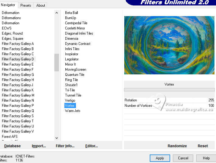 21. Effets>Modules Externes>Filters Unlimited 2.0 - Filter Factory Gallery D - Vortex