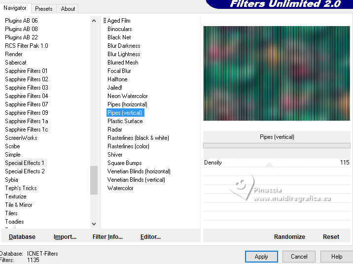 2. Effets>Modules Externes>Filters Unlimited 2.0 - Special Effects 1 - Pipes (vertical).