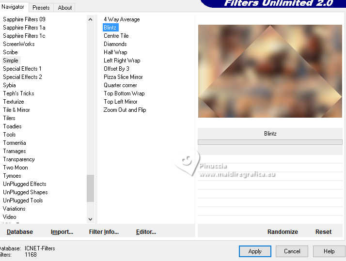 4. Effets>Modules Externes>Filters Unlimited 2.0 - Simple - Blintz