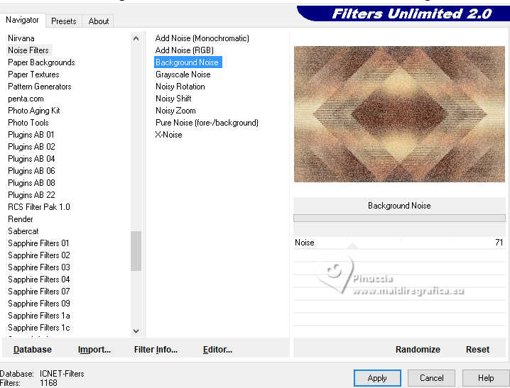 8. Effets>Modules Externes>Filters Unlimited 2.0 - Noise Filters - Background Noise