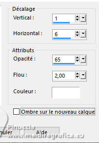Effets>Effets 3D>Ombre portée, couleur blanche.