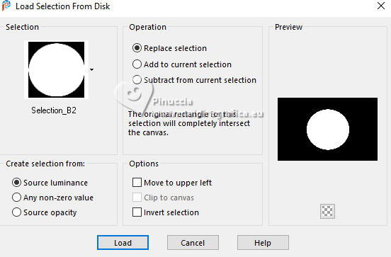 23. Selections>Load/Save Selection>Load Selection from Disk.