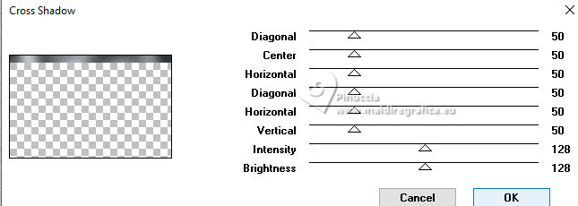 9. Effetti>Plugins>Graphics Plus - Cross Shadow, con i settaggi standard.