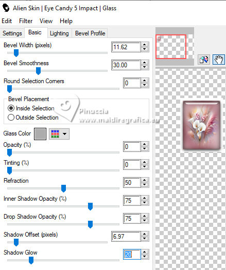 25. Effetti>Plugins>Alien Skin Eye Candy 5 Impact - Glass - Clear, con i seguenti settaggi: