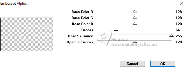 12. Effetti>Plugins>Mura's Seamless - Emboss at Alpha, con i settaggi standard.