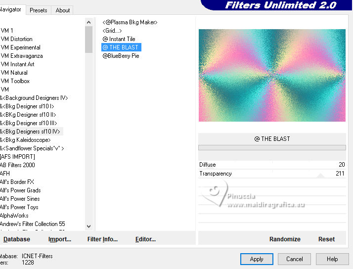 4. Effetti>Plugins>Filters Unlimited 2.0 - &<Bkg Designers sf10IV> - @THE BLAST, con i settaggi standard
