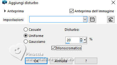 19. Regola>Aggiungi/Rimuovi disturbo>Aggiungi Disturbo, con i settaggi precedenti.