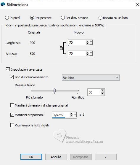 Immagine>Ridimensiona, al 70%, tutti i livelli non selezionato.