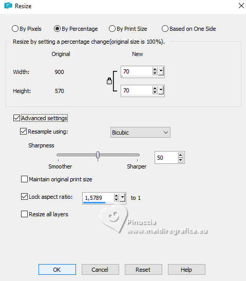 Image>Resize, to 70%, resize all layers not checked.
