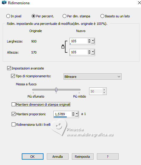 Immagine>Ridimensiona, al 105%, tutti i livelli non selezionato.