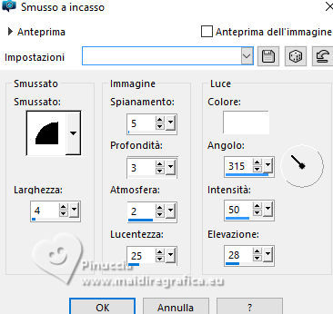 23. Effetti>Effetti 3D>Smusso a incasso, con i settaggi precedenti.