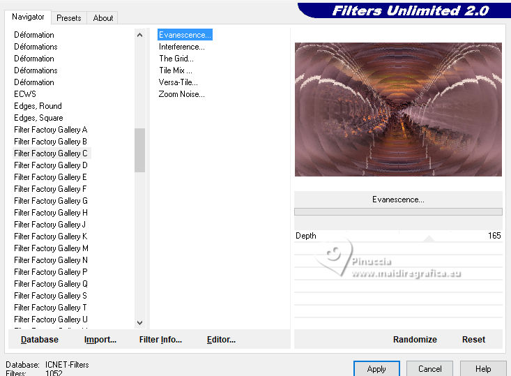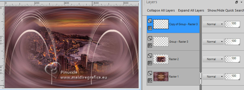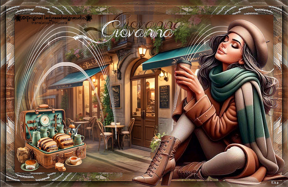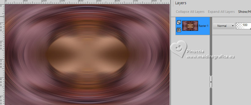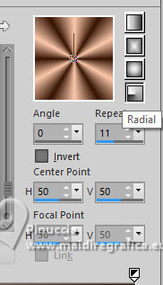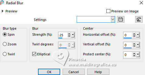 For this tutorial, you will need: ![]() Thanks for the tubes Beatriz, and for the mask Narah. (you find here the links to the material authors' sites) ![]() consult, if necessary, my filter section here Filters Unlimited 2.0 here Filter Factory Gallery C - Evanescence here AAA Frames - Foto Frame here Filters Factory Gallery can be used alone or imported into Filters Unlimited. (How do, you see here) If a plugin supplied appears with this icon ![]() You can change Blend Modes according to your colors. In the newest versions of PSP, you don't find the foreground/background gradient (Corel_06_029). You can use the gradients of the older versions. The Gradient of CorelX here ![]() Copy the Selections in the Selections Folder. Copy the Mask in the Masks Folder. 1. Set your foreground color to #fbc8ab, and your background color to #351403. ![]() Set your foreground color to a Foreground/Background Gradient, style Radial. ![]() 2. Open a new transparent image 900 x 550 pixels. Flood Fill the transparent image with your background color #5a401f.Adjust>Blur>Gaussian Blur - radius 30. ![]() 3. Selections>Load/Save Selection>Load Selection from Disk. Look for and load the selection Giovanna_sel_2 ![]() Layers>New Raster Layer. Open 1301-night-LB TUBES ![]() Edit>Copy. Go back to your work and go to Edit>Paste into Selection. Selections>Select None. 4. Effects>Distortion Effects>Polar Coordinates ![]() Effects>Reflection Effects>Rotating Mirror ![]() Layers>Duplicate. Image>Mirror>Mirror Vertical. 5. Layers>Merge>Merge Down. Effects>Edge Effects>Enhance. Again Layers>Merge>Merge Down. Adjust>Blur>Radial Blur ![]() Effects>Edge Effects>Enhance. 6. Result ![]() 7. Edit>Paste as new layer - the tube 1301-night-LB TUBES is still in memory. Image>Mirror>Mirror Horizontal. Layers>New Raster Layer. Selections>Load/Save Selection>Load Selection from Disk. Look for and load the selection Giovanna_sel_1 ![]() 8. Set your foreground color to #fdeadf. ![]() Flood Fill the selection with your foreground color #fdeadf.Selections>Select None. Objects>Align>Vertical Center. 9. Layers>Load/Save Mask>Load Mask from Disk. Look for and load the mask Narah_Mask_1435 ![]() Effects>Edge Effects>Enhance. Layers>Merge>Merge Group. Layers>Duplicate. Image>Mirror>Mirror Horizontal. 10. We have this. ![]() 11. Edit>Copy Special>Copy Merged. Edit>Paste as new image - and minimize this image for the moment. Go back to your work. Image>Add borders, 1 pixel, symmetric, color #000000. Selections>Select All. Image>Add borders, 50 pixels, symmetric, color #ffffff. 12. Selections>Invert. Edit>Paste into Selection - the image minimized is still in memory. 13. Effects>Plugins>Filters Unlimited 2.0 - Filter Factory Gallery C - Evanescence. ![]() Image>Rotate Right. Effects>Reflection Effects>Rotating Mirror, default settings. ![]() 14. Image>Rotate Left. Selections>Invert. Effects>3D Effects>Drop Shadow, color #000000. ![]() Selections>Invert. 15. Effects>Plugins>AAA Frames - Foto Frame. ![]() Effects>Edge Effects>Enhance. Effects>Reflection Effects>Rotating Mirror, default settings. ![]() Selections>Select None. 16. Open the tube 3503-woman-LB TUBES ![]() Edit>Copy. Go back to your work and go to Edit>Paste as new layer. Objects>Align>Right. Objects>Align>Bottom. Layers>Duplicate. 17. Activate the layer below of the original. Adjust>Blur>Gaussian Blur - radius 20. ![]() Change the Blend Mode of this layer to Screen. Activate the layer above. Adjust>Sharpness>Sharpen. 18. Open the tube 2725-Deco-LB TUBES ![]() Edit>Copy. Go back to your work and go to Edit>Paste as new layer. Image>Mirror>Mirror horizontal. Objects>Align>Left. Objects>Align>Bottom. 19. Effects>3D Effects>Drop Shadow, color #000000. ![]() Adjust>Sharpness>Sharpen. 20. Open LTDStudio_Giovanna_Texto ![]() Edit>Copy. Go back to your work and go to Edit>Paste as new layer. Move the text to your liking.21. Sign your work on a new layer. Add the author and the translator's watermarks. Layers>Merge>Merge All and save as jpg. For the tubes of this version thanks Yvonne and NaiseM; the landscape from the net. ![]() ![]() Your versions. Thanks![]() Kika ![]() Jolcsi ![]() If you have problems or doubts, or you find a not worked link, or only for tell me that you enjoyed this tutorial, write to me. |