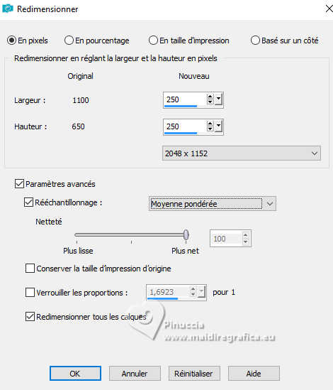 Image>Redimensionner, 250 x 250 pixels, verrouiller les proportions décoché,