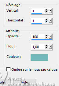 Effets>Effets 3D>Ombre portée, couleur d'avant plan (couleur 2).