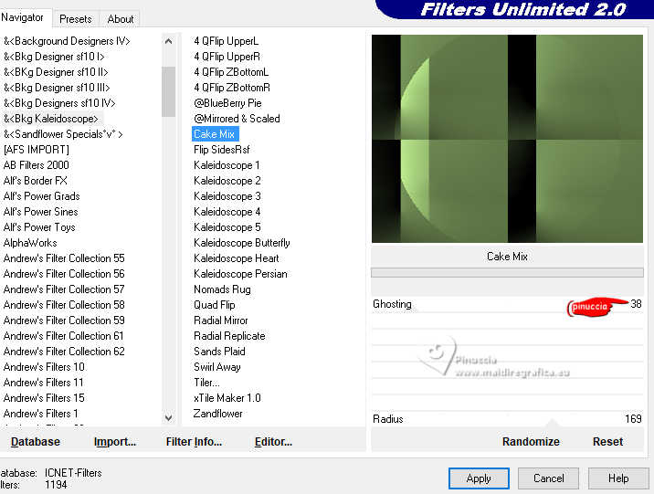 Effets>Modules Externes>Filters unlimited 2.0 - &<Bkg Kaleidoscope> - Cake Mix