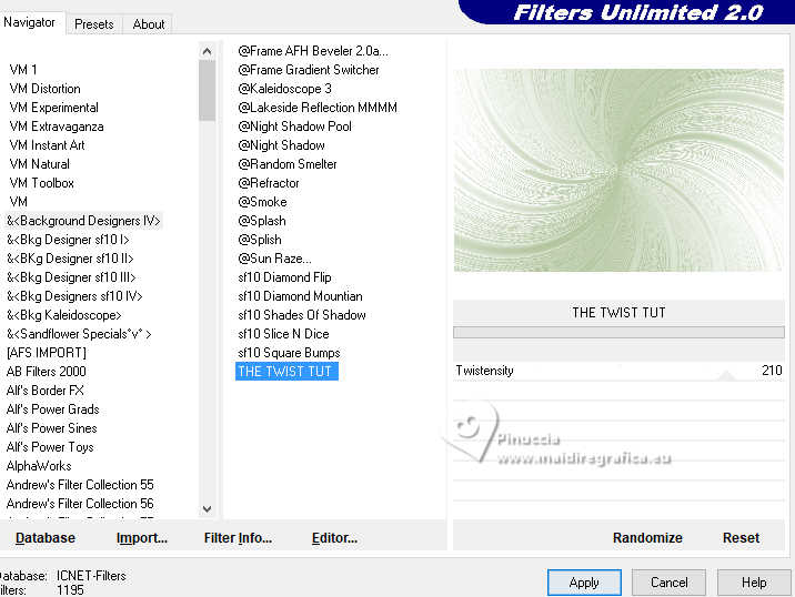Effets>Modules Externes>Filters Unlimited 2.0 - &<Background Designer IV> - THE TWIST TUT, par défaut.