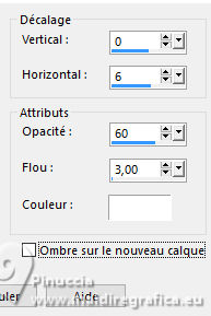 Effets>Effets 3D>Ombre portée, couleur blanche.