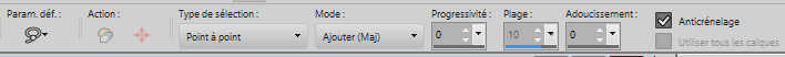 15. Activer l'outil Baguette magique , tolérance 0 et progressivité 60.
