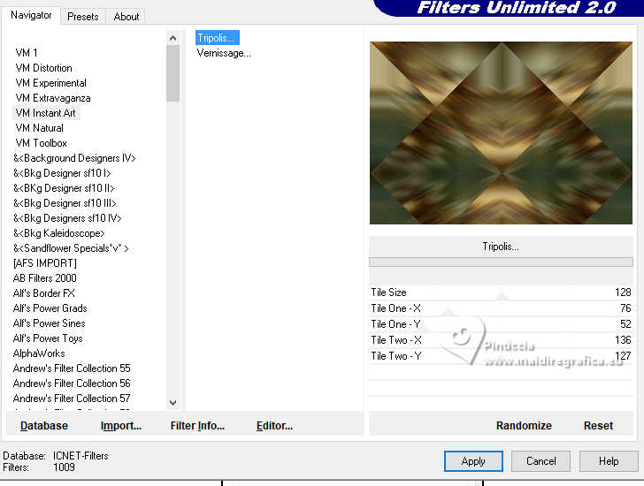 Effets>Modules Externes>Filters Unlimited 2.9 - VM Instant Art - Tripolis, par défaut.