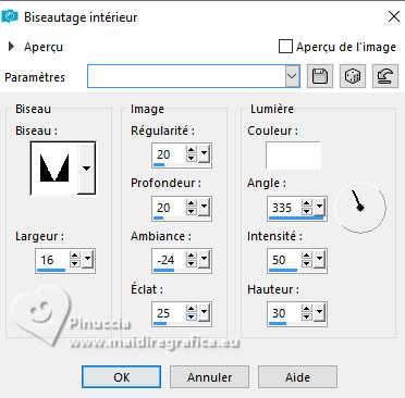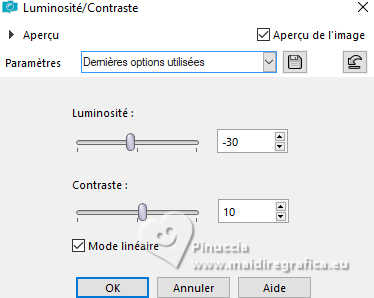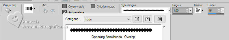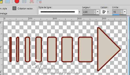 Le tutoriel a été créé avec PSP9 et traduit avec PSPX9 et PSP2020, mais il peut également être exécuté avec les autres versions. Suivant la version utilisée, vous pouvez obtenir des résultats différents. Depuis la version X4, la fonction Image>Miroir a été remplacée par Image>Renverser horizontalement, et Image>Renverser avec Image>Renverser verticalement. Dans les versions X5 et X6, les fonctions ont été améliorées par la mise à disposition du menu Objets. Avec la nouvelle version X7, nous avons à nouveau Miroir/Retourner, mais avec nouvelles différences. Consulter, si vouz voulez, mes notes ici Certaines dénominations ont changées entre les versions de PSP. Les plus frequentes dénominations utilisées: ![]() Traduction anglaise ici Vos versions ici![]() Nécessaire: ![]() (ici les liens vers les sites des créateurs de tubes) ![]() consulter, si nécessaire, ma section de filtre ici Blur - Radial Blur ici Mura's Meister - Copies, Perspective Tiling ici Virtual Painter - Virtual Painter 4 ici FM Tile Tools - Blend Emboss ici ![]() N'hésitez pas à changer le mode mélange des calques et leur opacité selon les couleurs utilisées. Dans les plus récentes versions de PSP, vous ne trouvez pas le dégradé d'avant plan/arrière plan ou Corel_06_029. Vous pouvez utiliser le dégradés des versions antérieures. Ici le dossier Dégradés de CorelX. ![]() Placer la forme prédéfinie dans les dossier Formes Prédéfinies 1. Ouvrir une nouvelle image transparente 1000 x 900 pixels. 2. Placer en avant plan la couleur foncée #6f1000 et en arrière plan la couleur claire #d2c9ba ![]() 2. Activer l'outil Forme prédefinie Chercher et sélectionner la forma SK Random 90 avec ces réglages Style de ligne Opposing Arrowheads-Overlap ![]() la ligne était dans les anciennes versions de PSP et on ne trouve pas dans les plus récentes. Je l'ai ajouté dans le matériel, dans le cas où vous ne l'avez pas dans votre PSP (à copier dans le dossier Styles de lignes) Placer la souris à 50x50 pixels et tirer jusqu'à 950 pixels e, sans mouver la souris, tirer vers le bas jusqu'à 400 pixels ![]() Vous devriez avoir ceci ![]() Ci dessus est le résultat avec les anciennes versions de PSP: j'ai utilisé PSP 8 pour tester l'outil, et Luz Cristina a créé le tutoriel avec PSP9. Avec les nouvelles versions - j'ai traduit les tutoriels avec PSPX9 et X2020, le résultat est un peu différente ![]() Dans ce cas, si vous voulez, vous pouvez placer la largeur de l'outil Forme prédéfinies à 2 pixels ![]() 3. Image>Miroir>Miroir horizontal. Effets>Effets de réflexion>Miroir rotatif. ![]() Résultat ![]() 4. Sélections>Sélectionner tout. Sélections>Flottante. Sélections>Modifier>Contracter - 8 pixels. Ouvrir le misted misted-LuzCristina ![]() Édition>Copier. Revenir sur votre travail et Édition>Coller dans la sélection. Sélections>Désélectionner tout. 5. Effets>Modules Externes>Mura's Meister - Copies. ![]() 6. Effets>Effets 3D>Ombre portée, couleur noire. ![]() Édition>Répéter Ombre portée. 7. Préparer en avant plan un dégradé de premier plan/arrière plan, style Linéaire. ![]() Calques>Nouveau calque raster. Remplir le calque du dégradé.Calques>Agencer>Déplacer vers le bas. 8. Sélections>Sélectionner tout. Édition>Coller dans la sélection - le misted est encore en mémoire. Sélections>Désélectionner tout. Effets>Effets d'image>Mosaïque sans jointures. ![]() 9. Effets>Modules Externes>Blur - Radial Blur si vous utilisez la version française du filtre (le résultat ne change pas): Effets>Modules Externes>Atténuation - Flou Radial ![]() 10. Effets>Modules Externes>Virtual Painter 4 - Virtual Painter 4. Filter: Oil painting - Material: Canvas(Fine). ![]() 11. Effets>Effets de réflexion>Miroir rotatif. ![]() 12. Effets>Effets de réflexion>Résonance. ![]() 13. Effets>Modules Externes>FM Tile Tools - Blend Emboss. ![]() 14. Réglage>Luminosité et Contraste>Luminosité et Contraste. ![]() 15. Calques>Dupliquer. Effets>Modules Externes>Mura's Meister - Perspective Tiling. ![]() 16. Effets>Effets de distorsion>Torsion. ![]() 17. Effets>Effets de réflexion>Miroir rotatif. ![]() 18. Effets>Effets 3D>Ombre portée, couleur noire. ![]() Édition>Répéter Ombre portée. 19. Édition>Coller comme nouveau calque - le misted est toujours en mémoire. Effets>Effets d'image>Mosaïque sans jointures. ![]() 20. Vous positionner sur le calque du haut de la pile. Ouvrir le tube de la femme 9087-LuzCristina ![]() Édition>Copier. Revenir sur votre travail et Édition>Coller comme nouveau calque. Déplacer le tube en bas à gauche.Effets>Effets 3D>Ombre portée, comme précédemment. 21. Ouvrir le texte texto ![]() Édition>Copier. Revenir sur votre travail et Édition>Coller comme nouveau calque. Déplacer le tube à votre goût.22. Vous positionner sur le calque du bas de la pile, Raster 2. Édition>Copier Image>Ajouter des bordures, 10 pixels, symétrique, couleur foncée. Image>Ajouter des bordures, 2 pixels, symétrique, couleur claire. Image>Ajouter des bordures, 10 pixels, symétrique, couleur foncée. Image>Ajouter des bordures, 2 pixels, symétrique, couleur claire. Image>Ajouter des bordures, 50 pixels, symétrique, couleur foncée. 23. Activer l'outil Baguette magique ![]() et cliquer dans le dernier bord pour le sélectionner. Édition>Coller dans la sélection - l'arrière plan de l'étape 20. 24. Effets>Effets 3D>Biseautage intérieur. ![]() Sélections>Désélectionner tout. 25. Image>Redimensionner, à 83%, redimensionner tous les calques coché. 26. Signer votre travail et enregistrer en jpg. Pour les tubes de ce version merci Luz Cristina et Mentali. ![]() ![]() Si vous avez des problèmes, ou des doutes, ou vous trouvez un link modifié, ou seulement pour me dire que ce tutoriel vous a plu, vous pouvez m'écrire. |