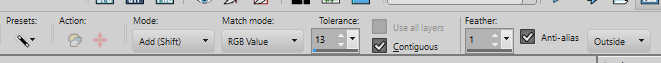 7. Activate your Magic Wand Tool , Tolerance 13 and Feather 1.