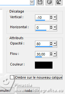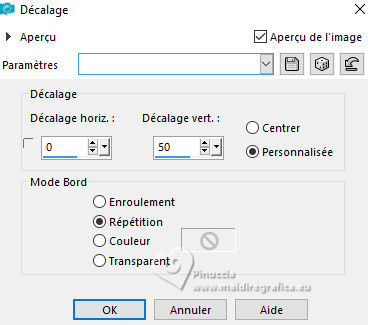 Le tutoriel a été créé avec PSP9 et traduit avec PSPX9 et PSP2020, mais il peut également être exécuté avec les autres versions. Suivant la version utilisée, vous pouvez obtenir des résultats différents. Depuis la version X4, la fonction Image>Miroir a été remplacée par Image>Renverser horizontalement, et Image>Renverser avec Image>Renverser verticalement. Dans les versions X5 et X6, les fonctions ont été améliorées par la mise à disposition du menu Objets. Avec la nouvelle version X7, nous avons à nouveau Miroir/Retourner, mais avec nouvelles différences. Consulter, si vouz voulez, mes notes ici Certaines dénominations ont changées entre les versions de PSP. Les plus frequentes dénominations utilisées: ![]() Traduction anglaise ici Vos versions ici![]() Nécessaire: ![]() Tubes de Luz Cristina et Grisi. Merci (ici les liens vers les sites des créateurs de tubes) ![]() consulter, si nécessaire, ma section de filtre ici Filters Unlimited 2.0 ici Mura's Meister - Perspective Tiling ici FM Tile Tools - Blend Emboss ici Graphics Plus - Panel Stripes ici Toadies - Weaver ici Carolaine and Sensbility - CS_LDots ici Filtres Graphics Plus et Toadies peuvent être utilisés seuls ou importés dans Unlimited. voir comment le faire ici). Si un filtre est fourni avec cette icône, ![]() N'hésitez pas à changer le mode mélange des calques et leur opacité selon les couleurs utilisées. Dans les plus récentes versions de PSP, vous ne trouvez pas le dégradé d'avant plan/arrière plan ou Corel_06_029. Vous pouvez utiliser le dégradés des versions antérieures. Ici le dossier Dégradés de CorelX. ![]() 1. Ouvrir une nouvelle image transparente 1000 x 900 pixels. 2. Placer en avant plan la couleur #e9a13d et en arrière plan la couleur #2e2133. ![]() Préparer en dégradé de premier plan/arrière plan, style Linéaire. ![]() Remplir l'image transparente du dégradé.3. Calques>Dupliquer. 4. Activer l'outil Sélection ![]() (peu importe le type de sélection, parce que avec la sélection personnalisée vous obtenez toujours un rectangle), cliquer sur Sélection personnalisée ![]() et setter ces paramètres. ![]() 5. Sélections>Inverser. Presser CANC sur le clavier ![]() Sélections>Désélectionner tout. Ne vous inquiètez pas si vous voyez rien 6. Effets>Effets 3D>Ombre portée, couleur noire. ![]() 7. Effets>Modules Externes>Graphics Plus - Panel Stripes ![]() 8. Effets>Modules Externes>Toadies - Weaver ![]() 9. Effets>Effets de réflexion>Miroir rotatif. ![]() 10. Effets>Modules Externes>Carolaine and Sensibility - CS-LDots. ![]() 11. Effets>Modules Externes>FM Tile Tools - Blend Emboss. ![]() 12. Réglage>Netteté>Netteté. 13. Calques>Fusionner>Fusionner le calque de dessous. 14. Calques>Dupliquer. 15. Effets>Modules Externes>Mura's Meister - Perspective Tiling. ![]() 16. Calques>Dupliquer. 17. Effets>Effets de réflexion>Résonance. ![]() 18. Effets>Effets géométriques>Pentagone. ![]() Édition>Répéter Pentagone. 19. Effets>Effets géométriques>Sphère. ![]() 20. Effets>Modules Externes>FM Tile Tools - Blend Emboss. ![]() 21. Effets>Effets 3D>Ombre portée, couleur noire. ![]() 22. Ouvrir le tube de la femme 8914-LuzCristina ![]() Édition>Copier. Revenir sur votre travail et Édition>Coller comme nouveau calque. 23. Effets>Effets d'image>Décalage. ![]() Calques>Agencer>Déplacer vers le bas. 24. Ouvrir le tube Grisi_Tube_Decoration_342 ![]() Édition>Copier. Revenir sur votre travail et Édition>Coller comme nouveau calque. Calques>Agencer>Placer en haut de la pile. Déplacer le tube en bas à droite.Effets>Effets 3D>Ombre portée, couleur noire. ![]() 25. Ouvrir le texte Texto ![]() Édition>Copier. Revenir sur votre travail et Édition>Coller comme nouveau calque. Déplacer le texte à votre goût.26. Image>Ajouter des bordures, 8 pixels, symétrique, couleur foncée. Image>Ajouter des bordures, 2 pixels, symétrique, couleur claire. Image>Ajouter des bordures, 60 pixels, symétriques, couleur foncée. 27. Ouvrir le déco Deco Luz Cristina ![]() Édition>Copier. Revenir sur votre travail et Édition>Coller comme nouveau calque. 28. Image>Ajouter des bordures, 2 pixels, symétrique, couleur claire. 29. Image>Redimensionner, 83%, redimensionner tous les calques coché. 30. Signer votre travail et enregistrer en jpg. Les tubes de cette version sont de Luz Cristina. Merci ![]() ![]() Si vous avez des problèmes, ou des doutes, ou vous trouvez un link modifié, ou seulement pour me dire que ce tutoriel vous a plu, vous pouvez m'écrire. |