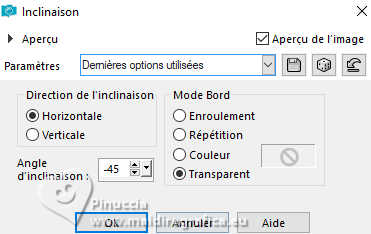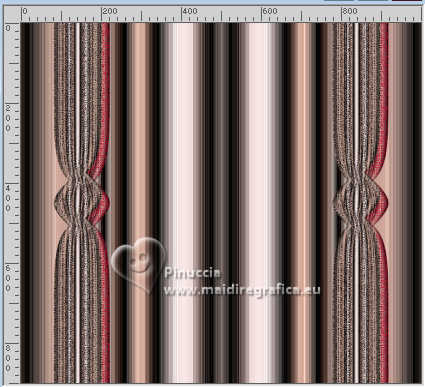 Le tutoriel a été créé avec PSP9 et traduit avec PSPX9 et PSP2020, mais il peut également être exécuté avec les autres versions. Suivant la version utilisée, vous pouvez obtenir des résultats différents. Depuis la version X4, la fonction Image>Miroir a été remplacée par Image>Renverser horizontalement, et Image>Renverser avec Image>Renverser verticalement. Dans les versions X5 et X6, les fonctions ont été améliorées par la mise à disposition du menu Objets. Avec la nouvelle version X7, nous avons à nouveau Miroir/Retourner, mais avec nouvelles différences. Consulter, si vouz voulez, mes notes ici Certaines dénominations ont changées entre les versions de PSP. Les plus frequentes dénominations utilisées: ![]() Traduction anglaise ici Vos versions ici![]() Nécessaire: ![]() (ici les liens vers les sites des créateurs de tubes) ![]() consulter, si nécessaire, ma section de filtre ici Filters Unlimited 2.0 ici AP Distort - Distort-ShiftMesh ici Mura's Seamless - Emboss ici VM Distortion - Kaleidoscope ici Mura's Meister - Perspective Tiling ici Mura's Meister - Copies ici Filtres Mura's Seamless et VM Distortion peuvent être utilisés seuls ou importés dans Filters Unlimited. voir comment le faire ici). Si un filtre est fourni avec cette icône, ![]() N'hésitez pas à changer le mode mélange des calques et leur opacité selon les couleurs utilisées. ![]() Placer le dégradé dans le dossier Dégradés. 1. Ouvrir une nouvelle image transparente 1000 x 900 pixels. 2. Placer en avant plan le dégradé Metallic rose, stile Linéaire. ![]() Remplir l'image transparent du dégradé.3. Effets>Effets de textures>Pierre polie ![]() 4. Image>Miroir>Miroir horizontal. 5. Effets>Effets de réflexion>Miroir rotatif. ![]() 6. Calques>Dupliquer. 7. Effets>Effets géométriques>Cercle. ![]() 8. Image>Redimensionner, à 60%, redimensionner tous les calques décoché. 9. Effets>Effets d'image>Mosaïque sans jointures. ![]() 10. Effets>Effets de distorsion>Cintrage - 3 fois ![]() 11. Effets>Effets d'image>Décalage. ![]() 12. Effets>Effets de réflexion>Miroir rotatif. ![]() 13. Effets>Modules Externes>AP [Distort] - Distort-ShiftMesh ![]() 14. Réglage>Teinte et saturation>Amélioration automatique de la saturation (optionnel dans votre libre) la capture est en anglais, parce que je seulement la version anglaise de cette ancienne version de PSP ![]() Cet effet ne se retrouve que jusqu'à la version 9 de Jasc PSP. Pour mon exemple, en comparant le résultat après l'effet Distort (à gauche) et la tag de Luz Cristina (à droite), ![]() Avec la version PSP2020 le résultat et encore différente ![]() j'ai utilisé Réglage>Teinte et Saturation>Coloriser, avec ces paramètres. ![]() C'est à vous de décider si vous souhaitez suivre mon exemple. 15. Effets>Modules Externes>Mura's Seamless - Emboss. ![]() 16. Effets>Effets 3D>Ombre portée, couleur noire. ![]() Optionnel Édition>Répéter Ombre portée 17. Calques>Dupliquer. 18. Effets>Effets géométriques>Inclinaison. ![]() 19. Effets>Effets de réflexion>Miroir rotatif. ![]() 20. Calques>Agencer>Déplacer vers le bas. 21. Vous positionner sur le calque Raster 1. Calques>Dupliquer. 22. Effets>Modules Externes>Mura's Meister - Perspective Tiling. ![]() 23. Effets>Modules Externes>Mura's Meister - Copies. ![]() 24. Vous positionner à nouveau sur le calque Raster 1. Calques>Dupliquer. Image>Redimensionner, à 60%, redimensionner tous les calques décoché. 25. Effets>Modules Externes>VM Distortion - Kaléïdoscope. ![]() 26. Image>Redimensionner, à 80%, redimensionner tous les calques décoché. Effets>Effets 3D>Ombre portée, comme précédemment. 27. Vous positionner sur le calque du haut de la pile. Ouvrir le tube 6587-Luz Cristina ![]() Édition>Copier. Revenir sur votre travail et Édition>Coller comme nouveau calque. Déplacer le tube à gauche.Effets>Effets 3D>Ombre portée, comme précédemment. 28. Ouvrir le texte Texto ![]() Édition>Copier. Revenir sur votre travail et Édition>Coller comme nouveau calque. Déplacer le tube à votre goût.29. Pour les bords, placer en avant plan la couleur foncée #15110f, et en arrière plan la couleur claire cba396. ![]() Image>Ajouter des bordures, 3 pixels, symétrique, couleur foncée #15110f. Image>Ajouter des bordures, 2 pixels, symétrique, couleur claire #cba396. Image>Ajouter des bordures, 5 pixels, symétrique, couleur foncée #15110f. Image>Ajouter des bordures, 2 pixels, symétrique, couleur claire #cba396. Image>Ajouter des bordures, 5 pixels, symétrique, couleur foncée #15110f. Image>Ajouter des bordures, 2 pixels, symétrique, couleur claire #cba396. Image>Ajouter des bordures, 50 pixels, symétrique, couleur foncée. 30. Activer l'outil Baguette magique ![]() et cliquer dans le dernier bord pour le sélectionner. Effets>Effets de textures>Mosaïque antique ![]() Édition>Répéter Mosaïque antique Sélections>Désélectionner tout. 31. Image>Ajouter des bordures, 2 pixels, symétrique, couleur claire #cba396. Image>Redimensionner, à 84%, redimensionner tous les calques coché. 32. Signer votre travail et enregistrer en jpg. ![]() Si vous avez des problèmes, ou des doutes, ou vous trouvez un link modifié, ou seulement pour me dire que ce tutoriel vous a plu, vous pouvez m'écrire. |