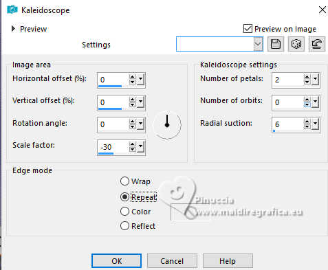 Effects>Reflection Effects>Kaleidoscope, last settings.