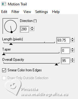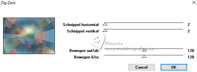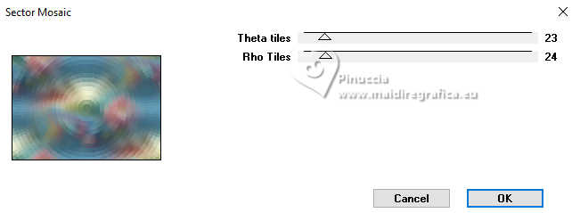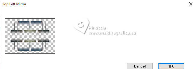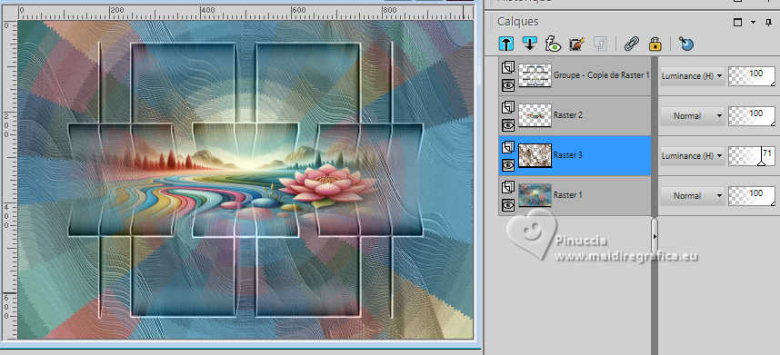 Pour traduire ce tutoriel j'ai utilisé PSPX9 et PSP2020, mais il peut également être exécuté avec les autres versions. Suivant la version utilisée, vous pouvez obtenir des résultats différents. Depuis la version X4, la fonction Image>Miroir a été remplacée par Image>Renverser horizontalement, et Image>Renverser avec Image>Renverser verticalement . Dans les versions X5 et X6, les fonctions ont été améliorées par la mise à disposition du menu Objets. Avec la nouvelle version X7, nous avons encore Image>Miroir et Image>Renverser/Retourner, mais avec nouvelles différences. Voir les détails à ce sujet ici Certaines dénominations ont changées entre les versions de PSP. Les plus frequentes dénominations utilisées: ![]() English translation here Vos versions ici![]() Nécessaire pour réaliser ce tutoriel: ![]() Images de Pinterest. Tube MJ Masque VAZU. (ici les liens vers les sites des créateurs du matériel) ![]() consulter, si nécessaire, ma section des filtres ici Filters Unlimited 2.0 ici Pixelate - Sector Mosaic ici °V° Kiwi's Oelfilter - Zig Zack ici Mura's Seamless - Emboss at Alpha ici Eye Candy 4000 - Motion Trail ici Simple - Top Left Mirror ici AAA Frames - Foto Frame ici Filtres Kiwi, Mura's Seamless et Simple peuvent être utilisés seuls ou importés dans Filters Unlimited. voir comment le faire ici. Si un filtre est fourni avec cette icône, ![]() en fonction des couleurs utilisées, vous pouvez changer le mode mélange et l'opacité des calques. Dans les plus récentes versions de PSP, vous ne trouvez pas le dégradé d'avant plan/arrière plan ou Corel_06_029. Vous pouvez utiliser le dégradés des versions antérieures. Ici le dossier Dégradés de CorelX. ![]() Placer les sélections dans le dossier Sélections. Ouvrir le masque dans PSP et le minimiser avec le reste du matériel Choisir deux couleurs du tube. Pour l'example: Placer en avant plan la couleur claire #6ea6c1, et en arrière plan la couleur foncée #05233d. Préparer en avant plan un dégradé de premier plan/arrière plan, style Linéaire. 1. Ouvrir une nouvelle image transparent 1000 x 700 pixels. Remplir l'image transparente du dégradé.2. Sélections>Sélectionner tout. Ouvrir le tube misted Édition>Copier. Revenir sur votre travail et Édition>Coller dans la sélection. Sélections>Désélectionner tout. 3. Effets>Effets d'image>Mosaïque sans jointures. ![]() 4. Réglage>Flou>Flou gaussien - rayon 20 ![]() 5. Effets>Modules Externes>Pixelate - Sector Mosaic 6. Effets>Modules Externes>°V° Kiwi's Oelfilter - Zig-Zack, par défaut. 7. Réglage>Ajouter/Supprimer du bruit>Ajouter du bruit. 8. Réglage>Netteté>Netteté. Calques>Dupliquer. 9. Calques>Nouveau calque de masque>A partir d'une image. Ouvrir le menu deroulant sous la fenêtre d'origine et vous verrez la liste des images ouvertes. Sélectionner le masque VZSTM12, Inverser les données du masque coché Calques>Fusionner>Fusionner le groupe. 10. Effets>Modules Externes>Mura's Seamless - Emboss at Alpha, par défaut. 11. Sélections>Charger/Enregistrer une sélection>Charger à partir du disque. Chercher et charger la sélection pixelate-MJ Presser CANC sur le clavier ![]() Sélections>Désélectionner tout. 12. Effets>Modules Externes>Eye Candy 4000 - Motion Trail. 13. Effets>Modules Externes>Simple - Top Left Mirror. Effets>Effets 3D>Ombre portée, couleur blanche. Placer le calque en mode Luminance (héritée) - si vous le jugez nécessaire 14. Sélections>Charger/Enregistrer une sélection>Charger à partir du disque. Chercher et charger la sélection pixelate-1-MJ Calques>Nouveau calque raster. 15. Édition>Coller dans la sélection - le misted est encore en mémoire. Calques>Agencer>Déplacer vers le bas. Sélections>Désélectionner tout. Vous positionner sur le calque Raster 1. 16. Ouvrir deco-MJ Édition>copier. Revenir sur votre travail et Édition>Coller comme nouveau calque. Placer le calque en mode Luminance (H) - ou autre - et réduire l'opacité +/-71% (selon vos couleurs). La tag et les calques - adapter Mode mélange et opacité selon vos couleurs. 17. Image>Ajouter des bordures, 1 pixel, symétrique, couleur claire d'avant plan. 18. Sélections>Sélectionner tout. Édition>Copier Image>Ajouter des bordures, 20 pixels, symétrique, couleur foncée d'arrière plan. 19. Sélections>Inverser. Édition>Coller dans la sélection - l'image de l'étape 18. 20. Effets>Modules Externes>AAA Frames - Foto Frame. Effets>Effets 3D>Ombre portée, couleur noire. ![]() 21. Édition>Copier Sélections>Sélectionner tout. 22. Image>Ajouter des bordures, 25 pixels, symétrique, couleur foncée d'arrière plan. 23. Sélections>Inverser. Édition>Coller dans la sélection - l'image de l'étape 21. Effets>Effets 3D>Ombre portée, couleur noire. ![]() Sélections>Désélectionner tout. 24. Ouvrir le tube femme-blue-MJ Édition>Copier. Revenir sur votre travail et Édition>Coller comme nouveau calque. Image>Redimensionner, à 58%, redimensionner tous les calques décoché. Déplacer le tube à droite.Effets>Effets 3D>Ombre portée, à choix. 25. Ouvrir vaso-deco-MJ Édition>Copier. Revenir sur votre travail et Édition>Coller comme nouveau calque. Image>Redimensionner, à 35%, redimensionner tous les calques décoché. Déplacer le tube à gauche.Effets>Effets 3D>Ombre portée, à choix. 26. Signer votre travail. Calques>Fusionner>Tous. 27. Image>Redimensionner, 1000 pixels de largeur, redimensionner tous les calques coché. Enregistrer en jpg. Pour les tubes de cette version merci Tammy's Welt ![]() Si vous avez des problèmes, ou des doutes, ou vous trouvez un link modifié, ou seulement pour me dire que ce tutoriel vous a plu, vous pouvez m'écrire. |