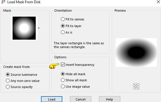 18. Layers>Load/Save Mask>Load Mask from Disk.