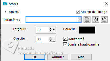 Pour traduire ce tutoriel j'ai utilisé PSPX9, mais il peut également être exécuté avec les autres versions. Suivant la version utilisée, vous pouvez obtenir des résultats différents. Depuis la version X4, la fonction Image>Miroir a été remplacée par Image>Renverser horizontalement, et Image>Renverser avec Image>Renverser verticalement. Dans les versions X5 et X6, les fonctions ont été améliorées par la mise à disposition du menu Objets. Dans la nouvelle version X7, nous avons à nouveau Miroir/Renverser, mais avec autres différences. Voir plus les détails à ce sujet ici Certaines dénominations ont changées entre les versions de PSP. Les plus frequentes dénominations utilisées: ![]() Traduction en italien ici Vos versions iciNécessaire pour réaliser ce tutoriel: ![]() (les liens des sites des tubeuses ici) ![]() Si vous voulez utiliser vos propres couleurs, n'hésitez pas à changer le mode et l'opacité des calques ![]() 1. Placer en avant plan la couleur #414656, et en arrière plan la couleur #a3a6af. ![]() 2. Ouvrir une nouvelle image transparente 600 x 600 pixels. ![]() Remplir l'image transparente avec la couleur foncée #414656.3. Ouvrir deco-1 ![]() Édition>Copier. Revenir sur votre travail et Édition>Coller comme nouveau calque. Image>Miroir>Miroir vertical (Image>Renverser). Image>Miroir>Miroir horizontal (Image>Miroir). Calques>Fusionner>Fusionner le calque de dessous. 5. Effets>Modules Externes>Filters Unlimited 2.0 - Simple - Quarter corner. ![]() Effets>Modules Externes>Filters Unlimited 2.0 - Simple - Diamonds. ![]() Effets>Modules Externes>Filters Unlimited 2.0 - Simple - Zoom out and flip. ![]() Réduire l'opacité de ce calque à 36%. 6. Vous positionner sur le calque Raster 1. Activer l'outil Sélection ![]() (peu importe le type de sélection, parce que avec la sélection personnalisée vous obtenez toujours un rectangle), cliquer sur Sélection personnalisée ![]() et setter ces paramètres. ![]() Sélections>Transformer la sélection en calque. 7. Effets>Effets de textures>Stores - couleur noire. ![]() 8. Effets>Effets 3D>Ombre portée, couleur noire. ![]() Sélections>Désélectionner tout. 9. Effets>Modules Externes>Flaming Pear - Flexify 2. ![]() Effets>Effets de bords>Accentuer davantage. 10. Calques>Nouveau calque raster. Sélection personnalisée , comme précédemment.![]() Remplir la sélection avec la couleur claire d'arrière plan #a3a6af.11. Effets>Effets de textures>Stores, comme précédemment. ![]() Sélections>Désélectionner tout. 12. Effets>Effets 3D>Ombre portée, comme précédemment. ![]() 13. Ouvrir deco-pij13 ![]() Édition>Copier. Revenir sur votre travail et Édition>Coller comme nouveau calque. Calques>Agencer>Placer en haut de la pile. Déplacer le tube dans le coin en bas à droite.Calques>Dupliquer. Image>Rotation Libre - 90 degrees à gauche. ![]() Déplacer ce tube dans le coin en haut à gauche(points les uns contre les autres) ![]() 14. Ouvrir le tube printerest-28 ![]() Édition>Copier. Revenir sur votre travail et Édition>Coller comme nouveau calque. Positionner bien le tube.15. Effets>Effets 3D>Ombre portée, couleur noire. ![]() 16. Image>Ajouter des bordures, 2 pixels, symétrique, couleur claire. Sélections>Sélectionner tout. Image>Ajouter des bordures, 40 pixels, symétrique, couleur foncée. Effets>Effets 3D>Ombre portée, couleur noire. ![]() 17. Sélections>Inverser. Effets>Effets de textures>Stores, comme précédemment. ![]() Sélections>Désélectionner tout. Image>Ajouter des bordures, 2 pixels, symétrique, couleur foncée. 18. Signer votre travail sur un nouveau calque. Calques>Fusionner>Tous et enregistrer en jpg. Pour les tubes de ces versions merci Riet ![]() Wieske ![]() ![]() Si vous avez des problèmes, ou des doutes, ou vous trouvez un link modifié, ou seulement pour me dire que ce tutoriel vous a plu, vous pouvez m'écrire. |
